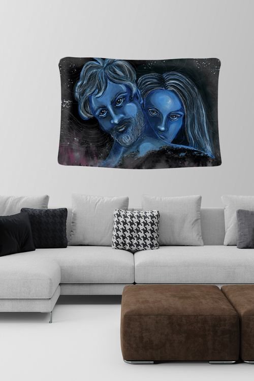 In a northern fantasy land of gnomes and spirits, we look upon the fire and dream. Blue, gray, and silver create a whimsical look of wonder.